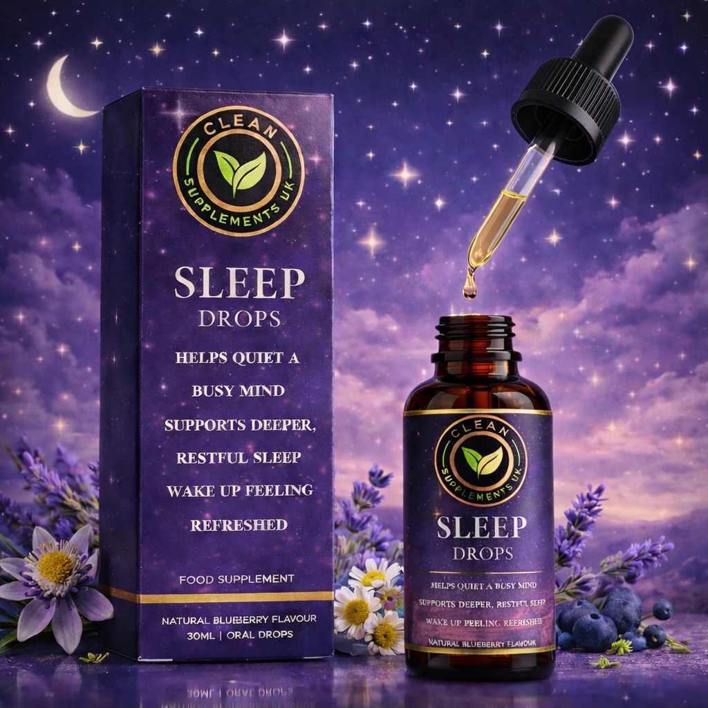 Clean Supplements UK Sleep Drops are designed to help calm the mind and support deeper, more restorative sleep so you can wake feeling refreshed and ready for the day ahead.